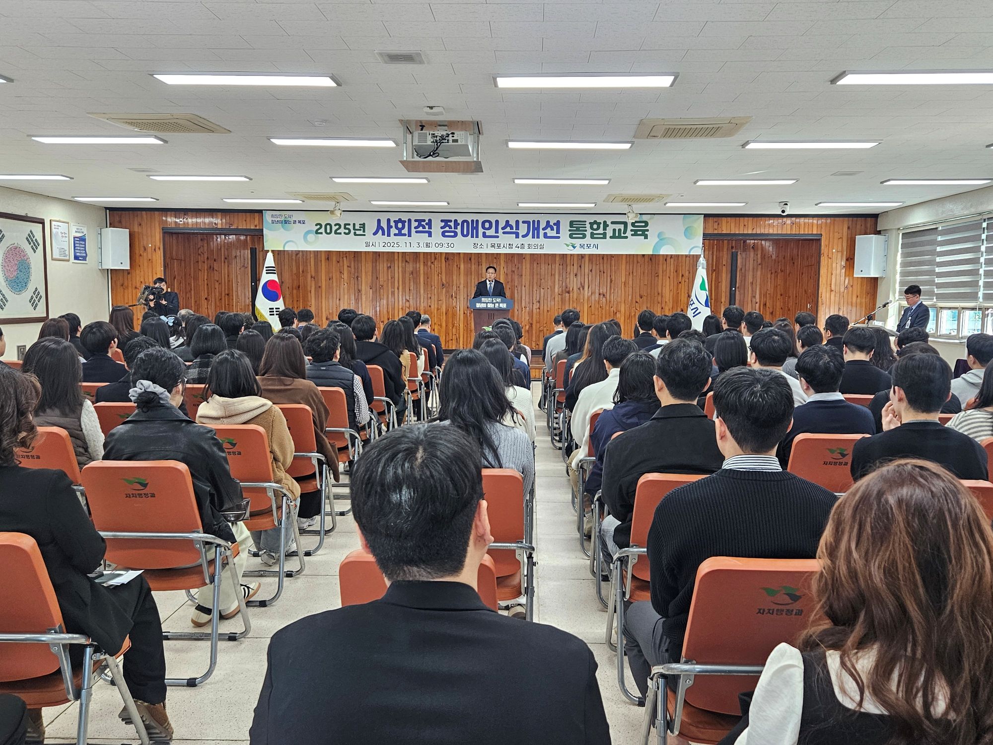 목포시는 지난 3일, 시청 회의실에서 소속 공무원과 기간제근로자 등 140여 명을 대상으로 ‘2025년 사회적 장애인식개선 통합교육’을 실시했다.